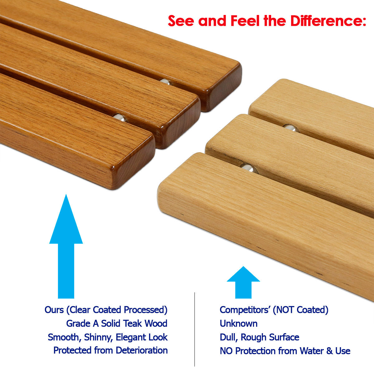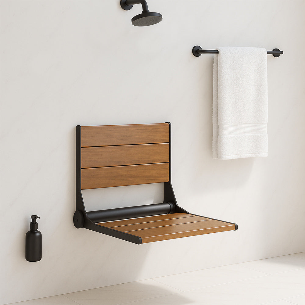 18" ADA Compliant Folding Teak Wood Shower Bench Seat Medical Wall Mount Black
